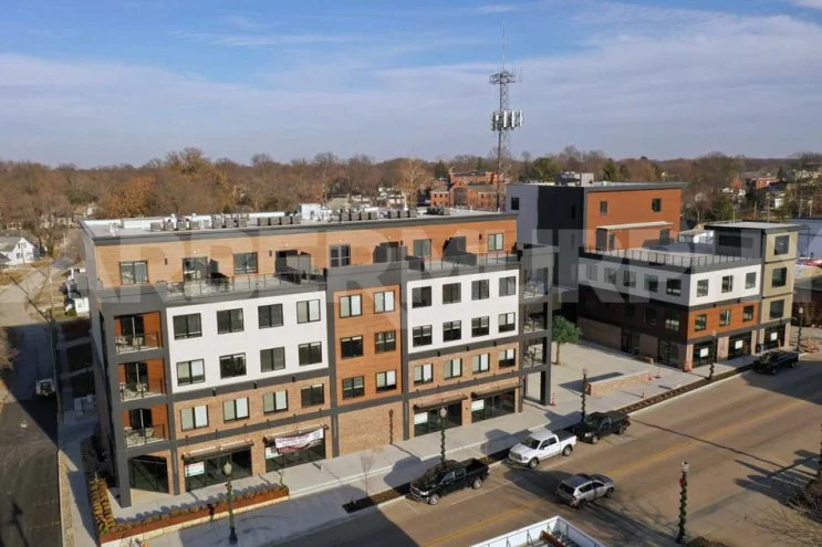 Multiple Building Campus in Edwardsville, IL. Project consists of a 40 Unit Apartment Building, 5-Story Office Building, and Retail/Restaurant Building. SDC designed and supplied the aluminum windows, residential DFHW package, and commercial DFHW package. SDC also did the shop drawings and engineering for the storefront and curtainwall scope of work.